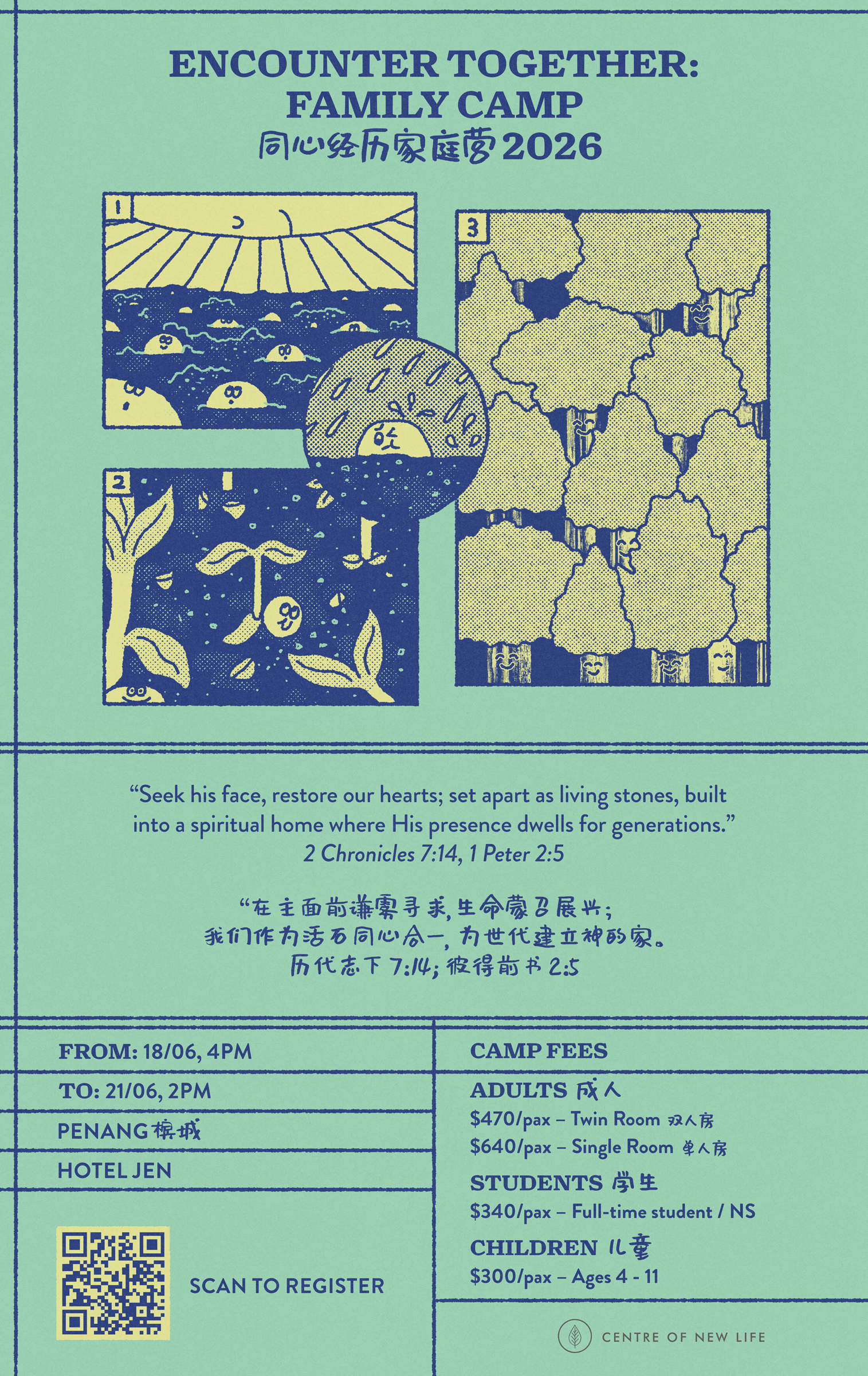 She received the call upon her life at 20 and began her theological studies in Malaysian Baptist Theological Seminary at 21 years old. Since then, she has been actively serving in the Children's Ministry and Youth Ministry of Tabernacle of Grace, Penang. She is also a committee member of the Northern District Committee of the Youth Alive Malaysia. Ps. Pamelyn is married to Ps. Kevin Evans Tay, who is currently the Senior Pastor of Tabernacle of Grace. She is blessed with three wonderful children, Davin Tay, Jervin Tay and Avalyn Tay. Her heart and singular passion is to see children of all nations worshipping Christ the Lord and seek Him wholeheartedly. She is delighted to be back for her third year as the children’s facilitator for the Centre of New Life’s Family Camp.