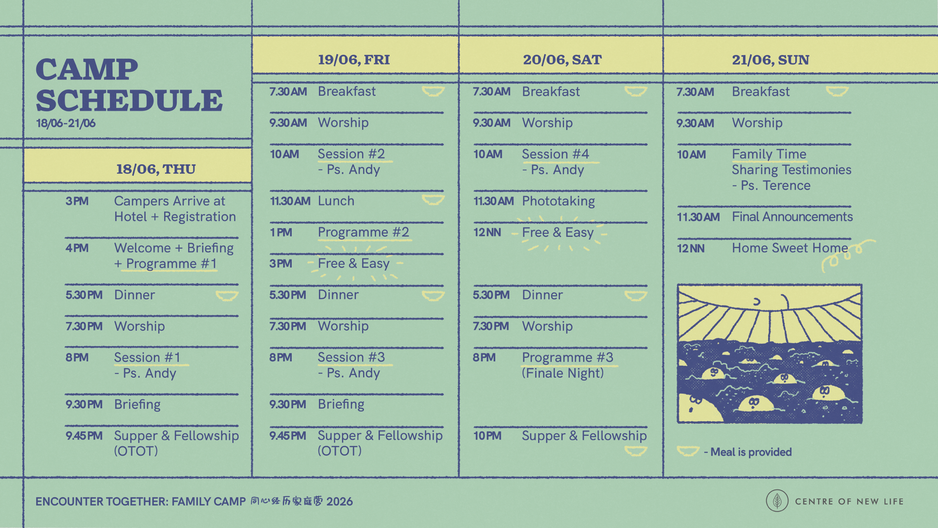 The camp committee will not be arranging extended stays at Hotel Jen, Penang outside the official camp dates (18th – 21st June 2026). If you would like to extend your stay, you may book separately with Hotel Jen, Penang or other accommodations for the additional dates you wish to stay.